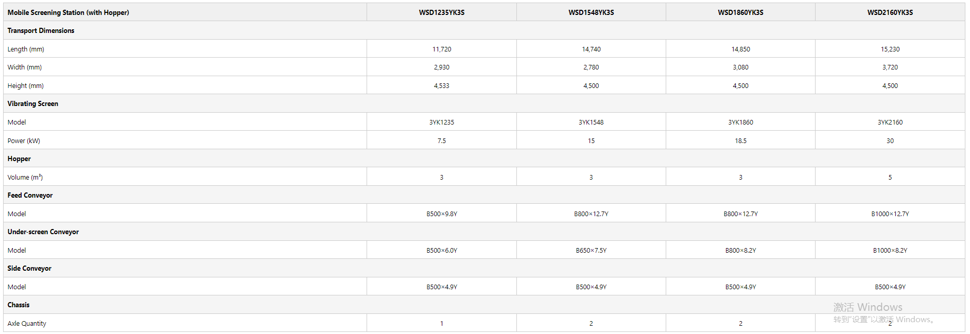 The tire mobile screening station can provide high operating speed and operational flexibility. The mobile crushing and screening stations all have high production capacity and adaptability, and can operate in conjunction with the Wanshengda tire-mounted mobile crusher or function independently as a classification screener for 2~5 types of aggregate sizes. They can be fed by wheel loaders, excavators, or crusher conveyors.