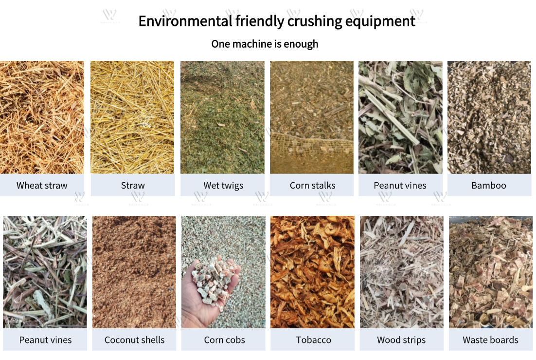 It can crush combustible crop waste straws such as corn stalks, rice straw bundles, wheat stalks and bean stalks, avoiding the waste and burning of these crop straws, effectively protecting the environment and greatly improving