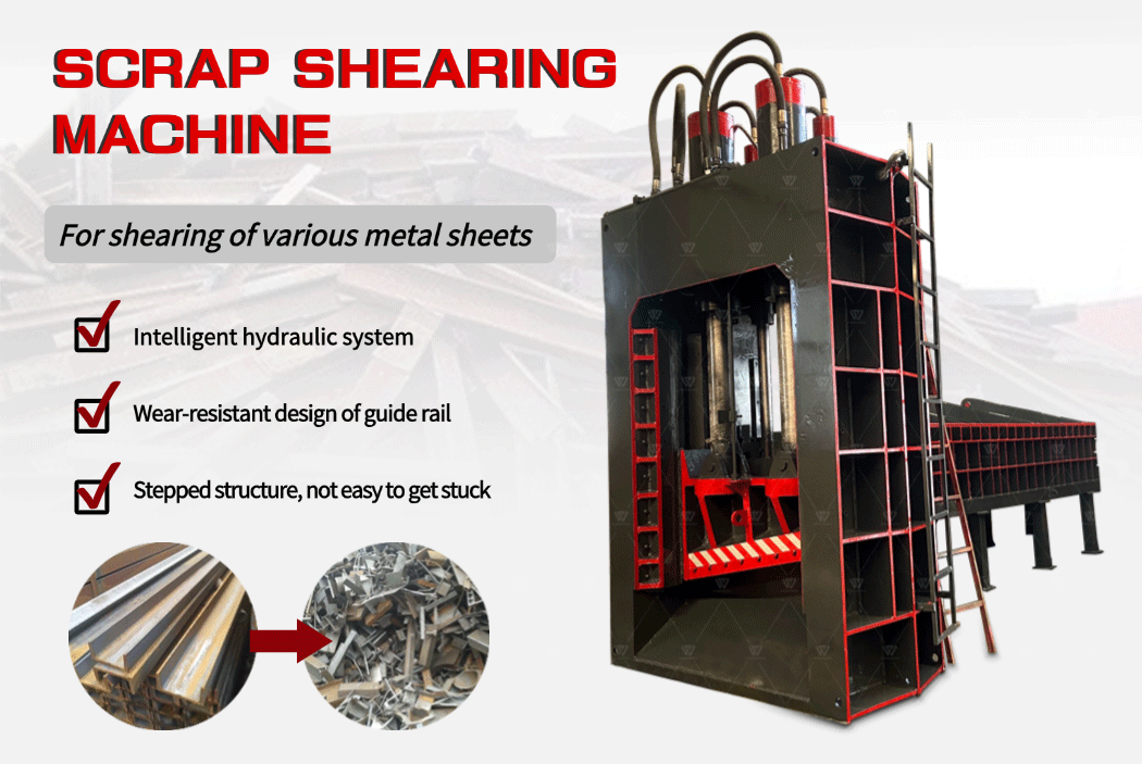The hydraulic scrap metal shearing machine is mainly used for processing various types of solid waste, including scrap iron, heavy waste, thin and light scrap steel, reinforcing bars, metal bundles, scrapped vehicle bodies, large lightweight metal structures, and profiles.Industrial and household scrap steel, as well as various plastic and non-ferrous metals (such as stainless steel, aluminum alloy, copper materials, etc.) are compressed and sheared into stove specifications. It is a steel rolling mill and a non-ferrous metal smelting business.It is an ideal equipment for industries, precision casting, and raw material production plants.