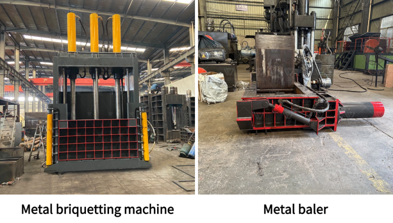 金属压块机:包括金属片式压块机和金属打包机,通过高压直接冷压各种金属废料,方便储存、运输和回收。