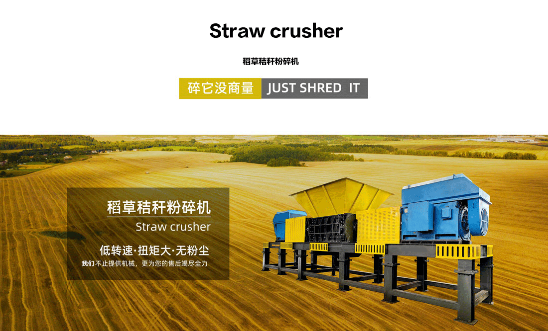 农作物秸秆通过传送带送至秸秆碎纸机进料口,再送入破碎室。双电机与减速器直接连接,带动破碎腔内的双轴(注:双轴上装有多齿刀),对物料进行轧制、剪切、挤压等方式的粉碎。然后将粉碎的材料运送到收集地点。整个过程既环保又节能。是一种高效、高产、运行稳定的现代化秸秆破碎设备。
